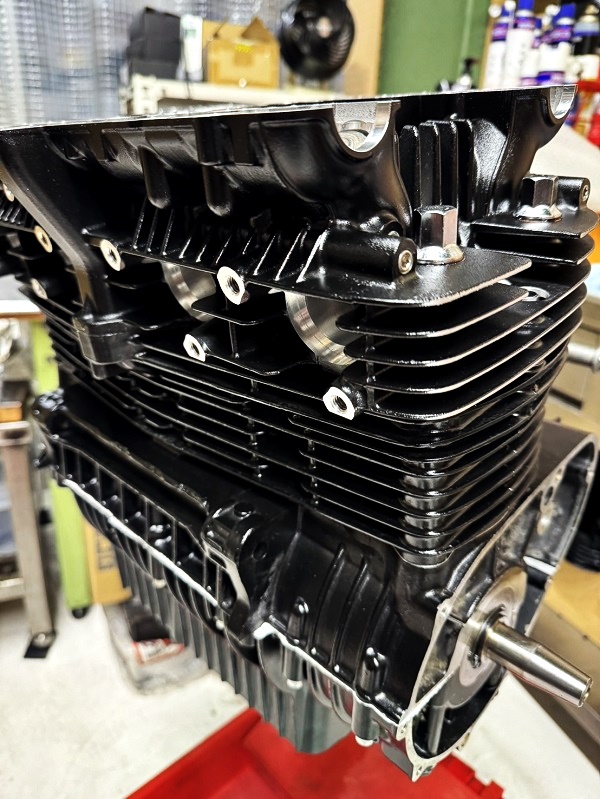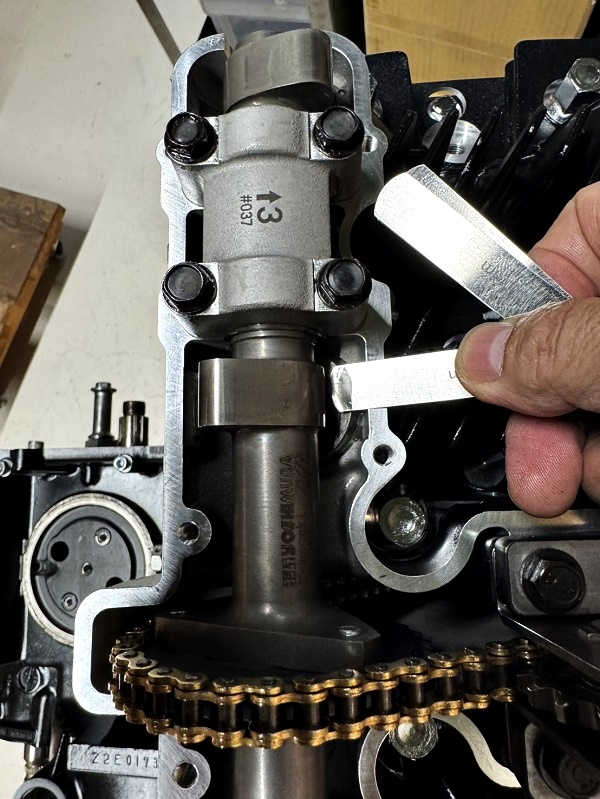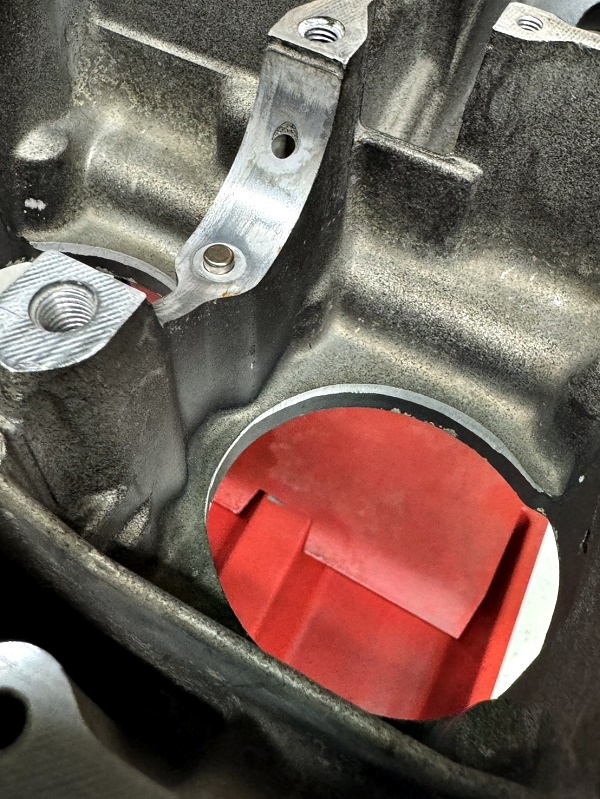 66OSスリーブに入れ替えたので、位置決めノックピンを取り付けシリンダーをケースに差し込んでチェック。(個体差で少し干渉する個体がある)