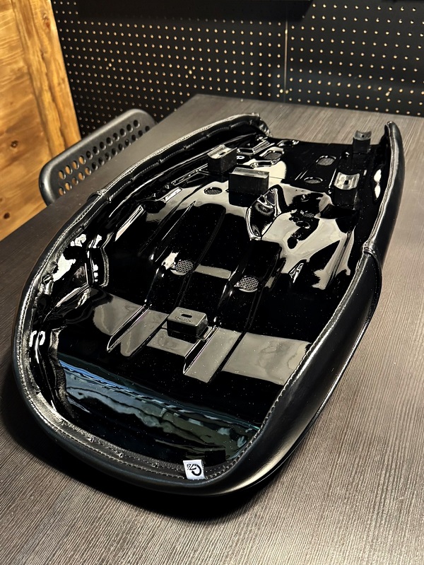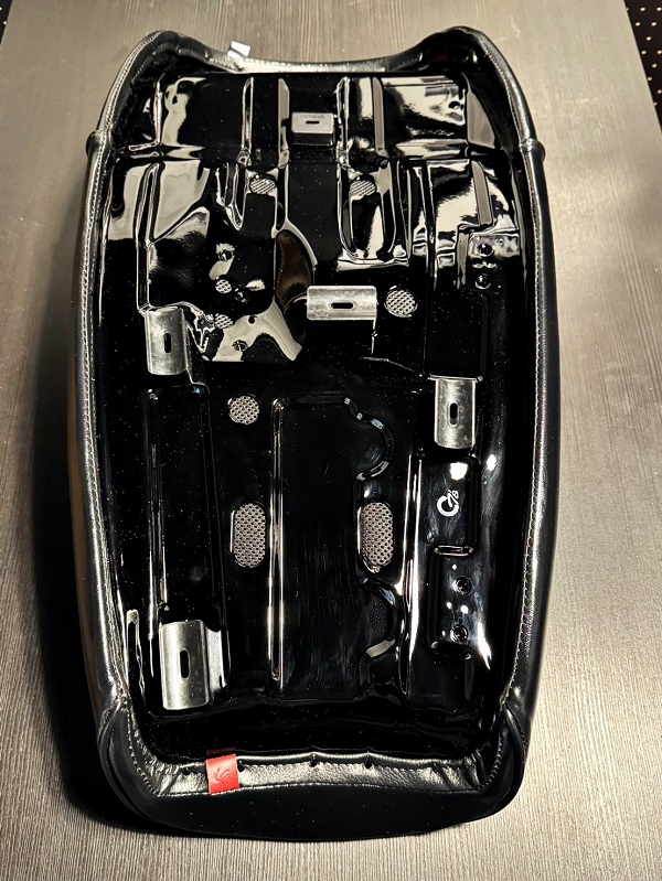 ベルトを取付の際はシート裏側側面に取付穴が設けてありますので千枚通しの様な物で表皮に穴を開けて取り付けてください。