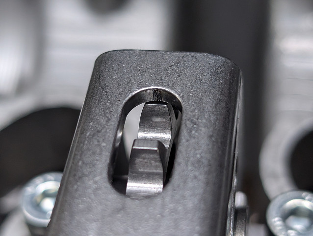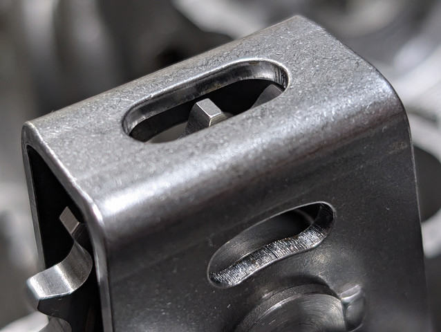 フレームにマイクロポリッシュを施しているのは、プレスによって生じる痕に振動等の応力集中を避ける為と、この最小のクリアランス部にカット時のバリが残らない様にする為でもあります。