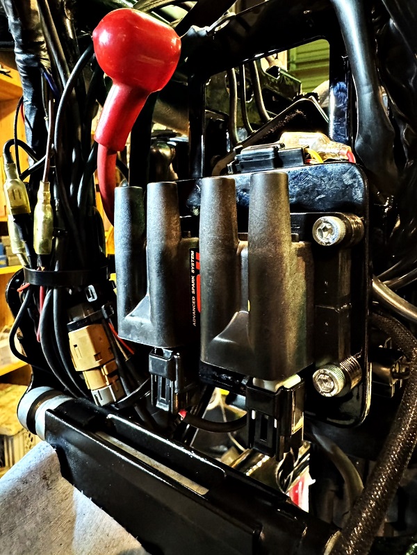 ツインプラグで追加されるイグニッションコイルは専用ブラケットで